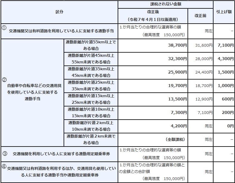 Q4 令和7年4月10日に令和7年3月分の通勤手当を支給(給与規程に従って支給)していた場合、この通勤手当については、改正後の非課税限度額が適用されますか。